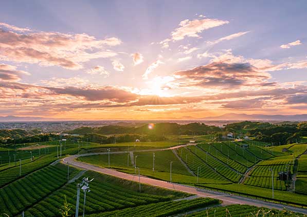 少し遠くに足をのばすなら、ホテルから車やタクシーで約20分ほどにある八女中央大茶園がおすすめ。24時間開放されており、日暮れ以降は夕焼けや星空が美しく、早朝は展望所からの靄のかかる広大な茶園の眺めなど、素晴らしい景観に出会えます。澄み切った空気と共に、心を解き放ってリフレッシュする時間をお過ごしください。