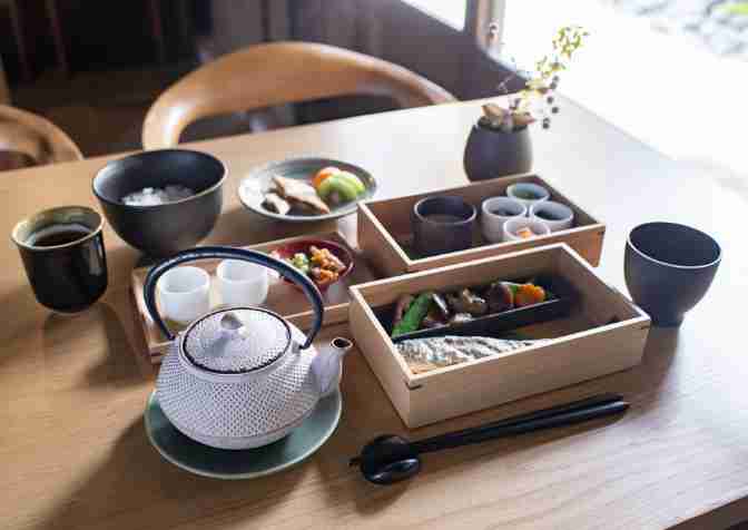 ご朝食には、筑後地域の山のもの、ヤマメなど旬の川のものをふんだんに使用した佃煮や、八女茶のお茶漬けをご用意。滋味深い地域の食材とカテキンを多く含んだ煎茶のお茶漬けは相性がよく、また健康的でさっぱりとやさしい味わいの朝食です。
