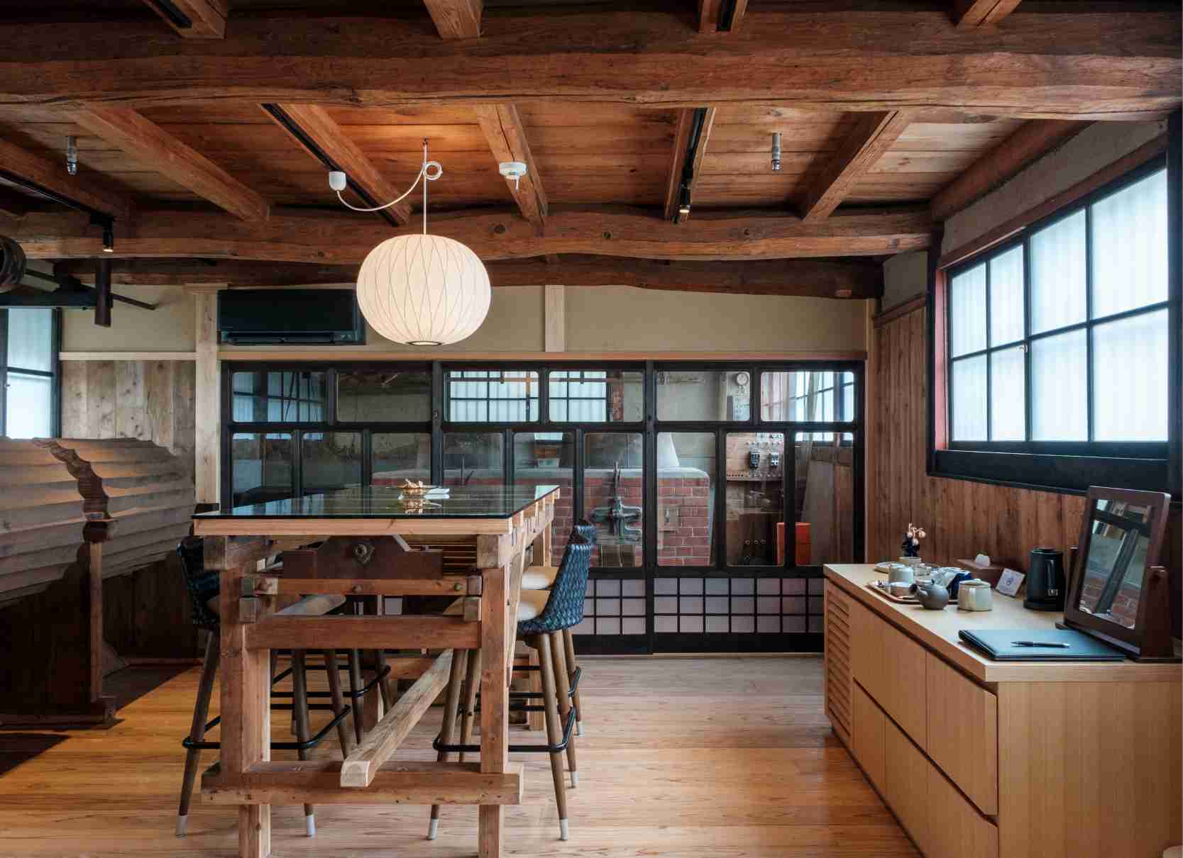 漆喰塗りの主屋に、離れ座敷、大正期地区の土蔵、1階の茶工場には当時の製茶用の蒸窯や機械を保存しながら、4室の客室に生まれ変わりました。